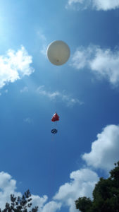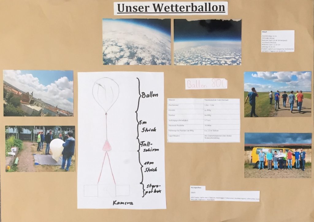 Ein besondere Aktion fand zu den Projekttagen 2018 statt. Herr Hagedorn hatte die Idee, mit einer solchen Gruppe von Interessierten einen Wetterballon steigen zu lassen. Nun ist dies nicht so einfach möglich. Erst musste recherchiert werden, woher man einen solchen bekommt, welche Daten überhaupt erfasst werden können, wie kann man das am besten dokumentieren und wo kann man den in Erfurt oder Umgebung eigentlich stiegen lassen und was kostet das alles überhaupt? Jede Menge antworten galt es zu finden und Sponsoren zu gewinnen. All dies gelang und mit 26510,50 m ist der Ballon auch weit über Erfurt hinaus gekommen.