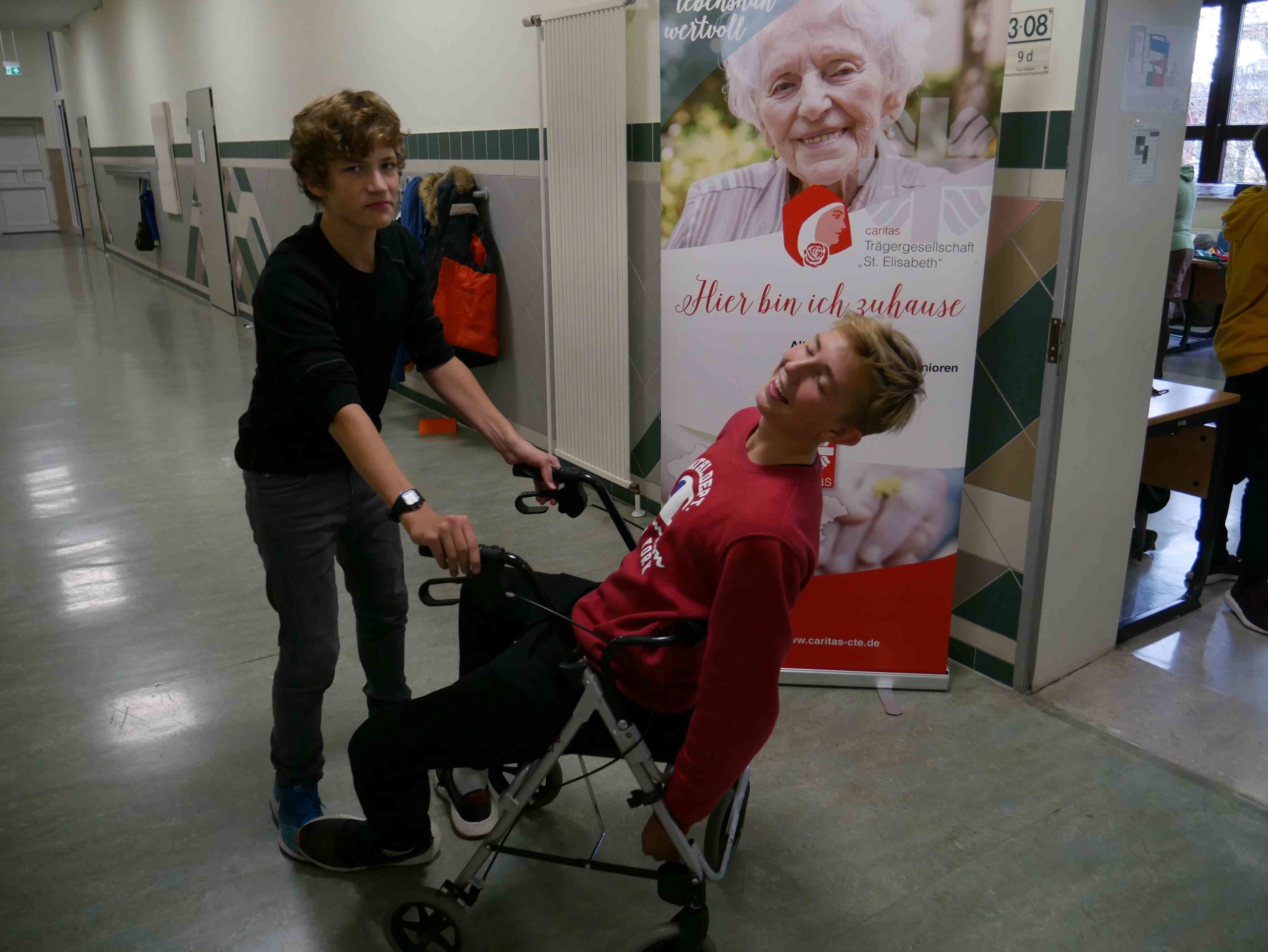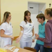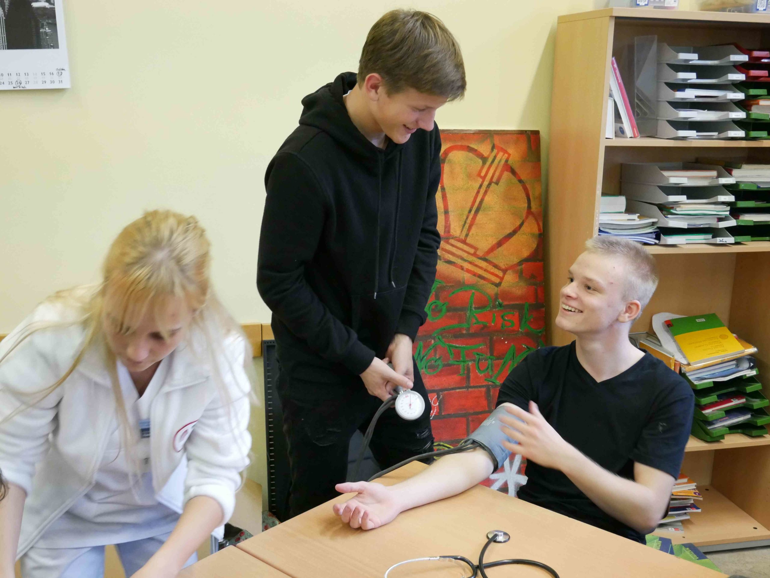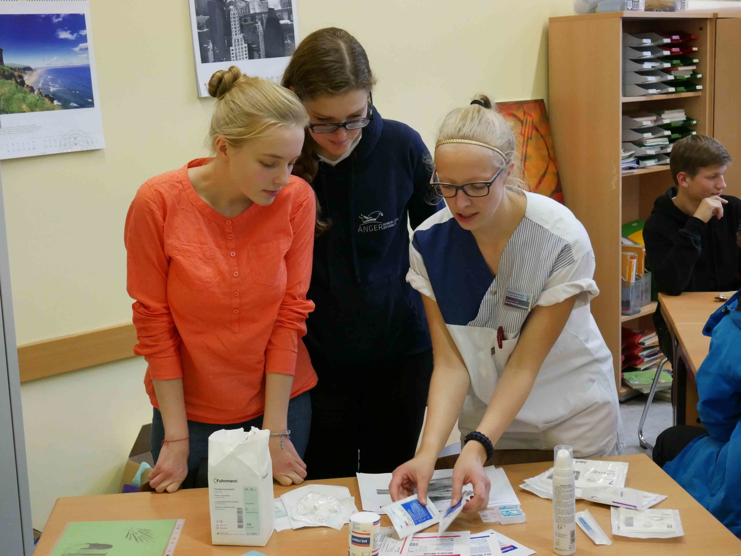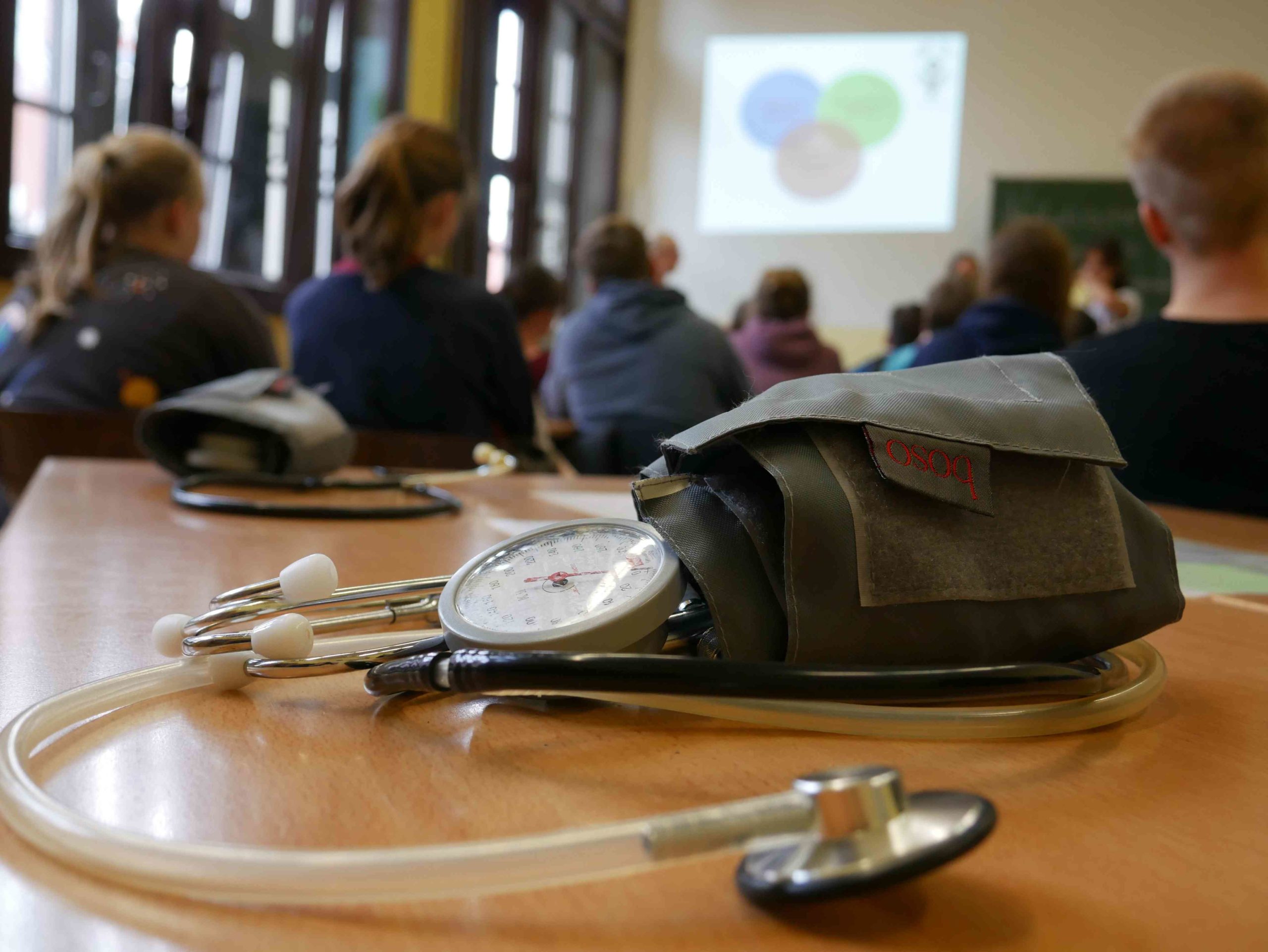 Nach einer kurzen Vorstellungsrunde im Foyer der Schule konnten sich die Schüler der Klassen 9-11 in zwei Blöcken auf die zehn Angebote verteilen und sich genauer informieren. Dabei ging es einerseits um die Abläufe eines Freiwilligen Sozialen Jahres (FSJ) oder die Rahmenbedingungen des Bundesfreiwilligendienstes an den jeweiligen Stellen. Des Weiteren gab es detaillierte Einblicke über die Ausbildungs- oder Studienbedingungen, sei es im Bereich der Kranken- oder Altenpflege, beim Rettungsdienst oder der Journalistenschule und der Theologischen Fakultät der Uni. Neben den Informationen zu den theoretischen Abläufen hatten die Schüler dabei auch die Gelegenheit, praktische Erfahrungen zu sammeln. Vor allem die persönlichen Eindrücke und Motive der jeweiligen Vertreter, egal ob Azubi, Chefarzt oder Seelsorgerin, waren dabei sehr einprägend.