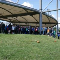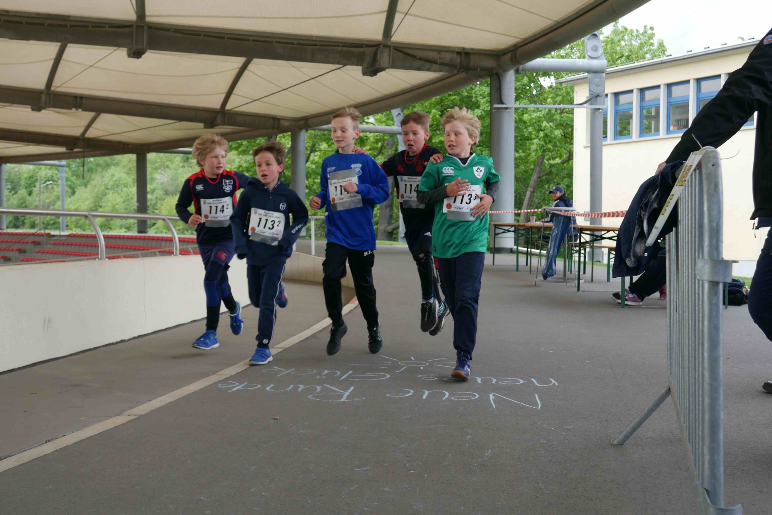 Während zum Aufbau am Vortag noch dicke Schneeflocken vom Himmel fielen, lachte die Sonne pünktlich zum Benefizlauf des Schulsportvereins dem Organisationssteam um Herrn Wollborn bereits am frühen Morgen entgegen. Die Streckenmarkierungen, Wasserposten, Zielwurfanlagen und Verpflegungsstände wurden von den vielen Helfern präpariert und am Meldestan d kamen die letzten Anmeldungen reingeflattert. Nach kleinen Anlaufschwierigkeiten hatten sich letztlich knapp 100 Läufer in unterschiedlichen Staffeln für das Rennen angemeldet.