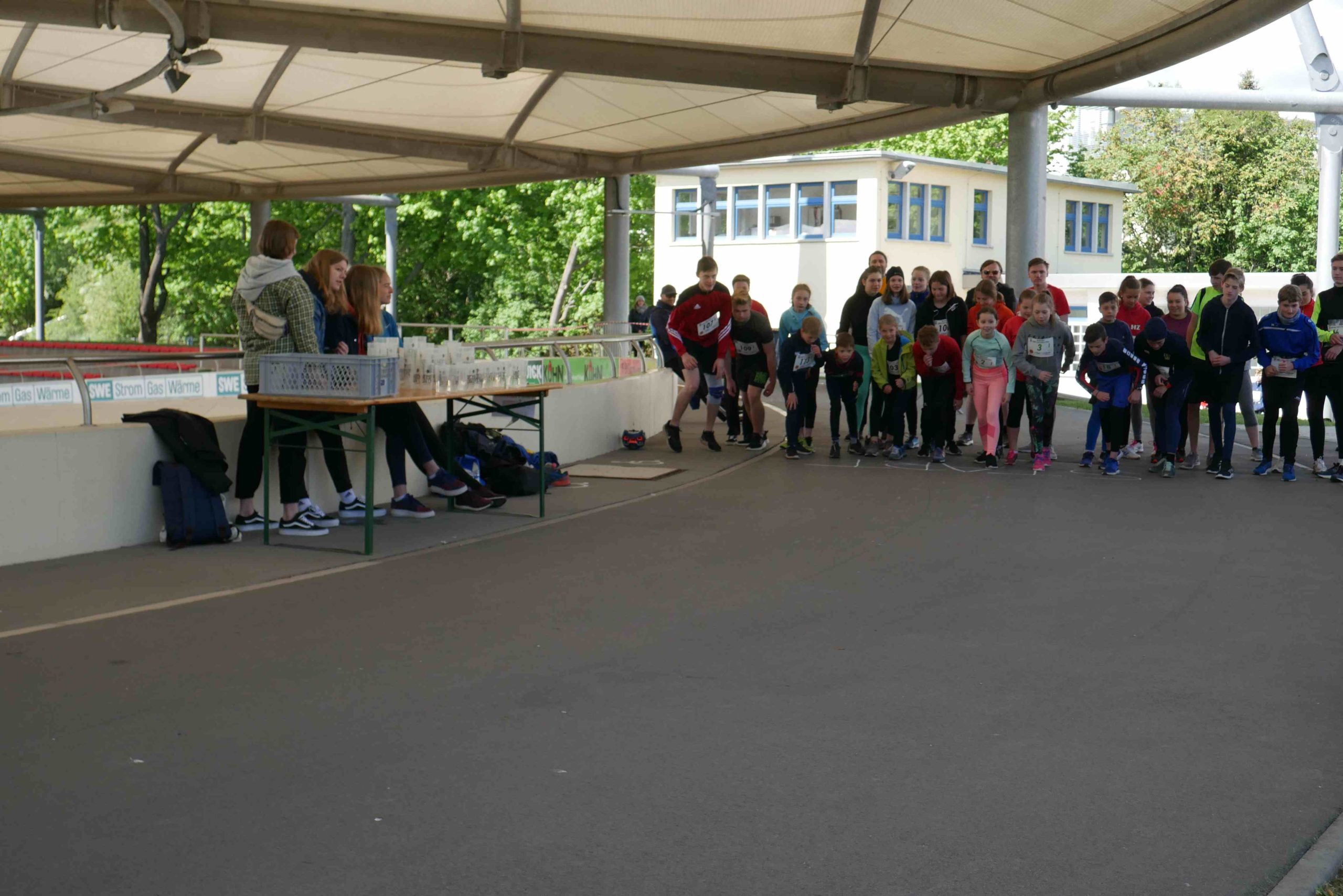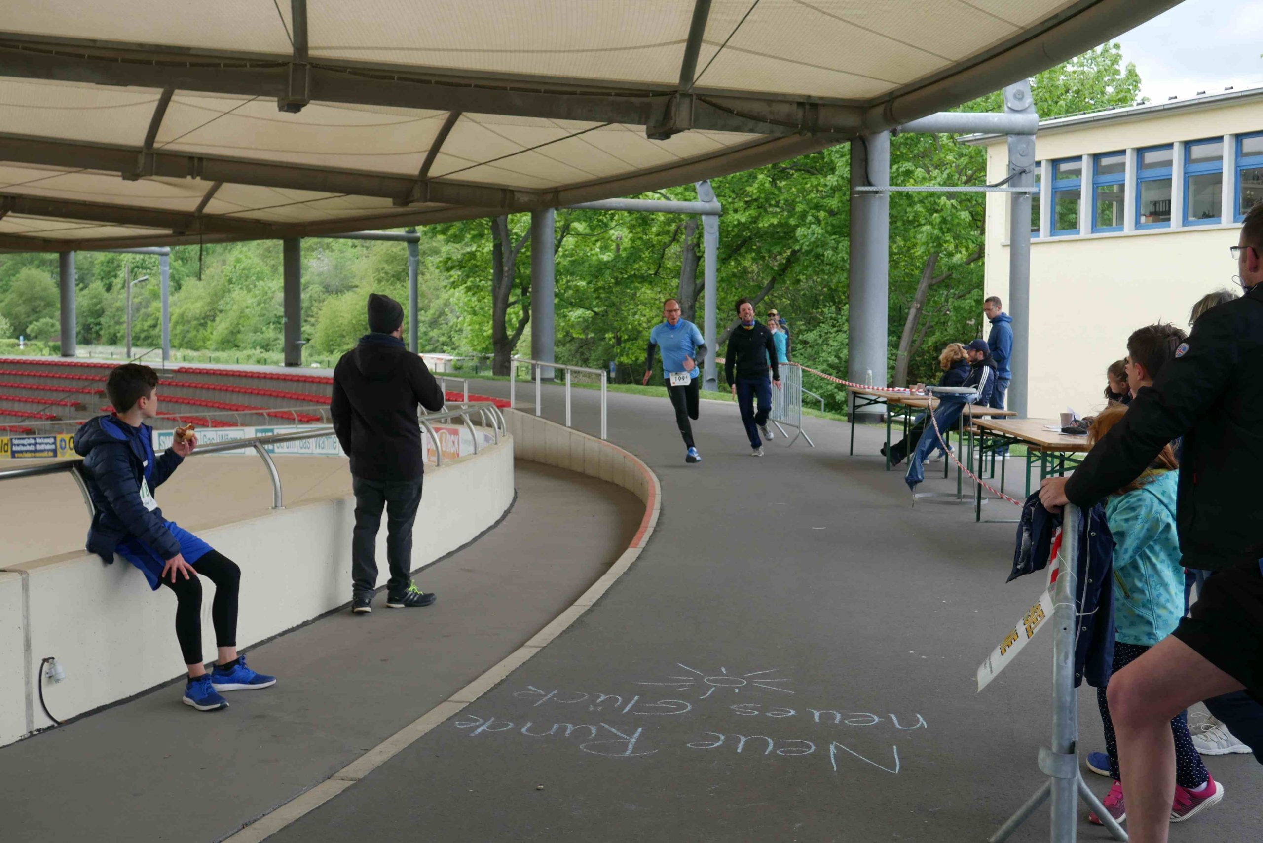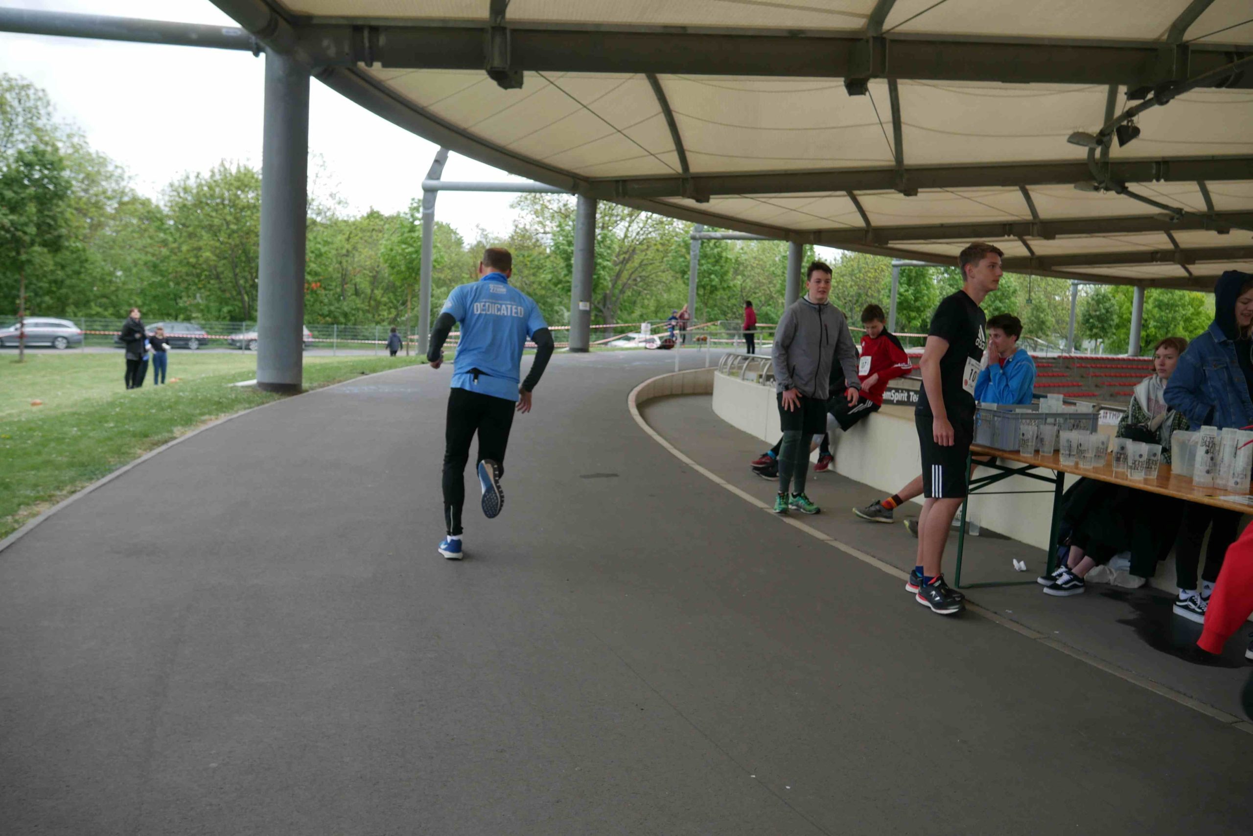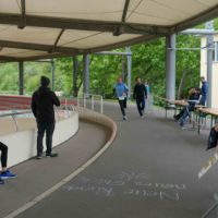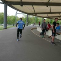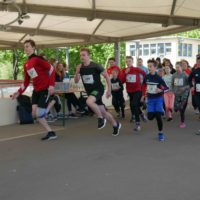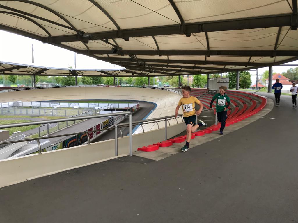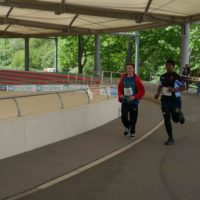 Der kurzen Begrüßung folgte eine Streckeneinweisung und gleich im Anschluss der Start in das zweistündige Rennen. Ob Kinderstaffel, Familienstaffel, Männer oder Frauen, die unterschiedlichsten Taktiken kamen zum Einsatz. Während einige Viererstaffeln Runde für Runde wechselten, hatten sich andere Zweierstaffeln den Lauf in mehrere Abschnitte aufgeteilt und liefen die 1,5 km lange Runde bis zu dreimal vor dem Wechsel. Einzelne Staffeln bewältigten gleich das ganze Rennen gemeinsam. Auf der Strecke kam es immer wieder zu kleinen Zweikämpfen, die dann im Stadionbereich der Radrennbahn in Sprintduellen kulminierten. Die Jüngsten, unter 10jährigen, lieferten sich bisweilen packende Spurts, aber auch die Großen ließen sich von den Anfeuerungsrufen des Publikums antreiben.