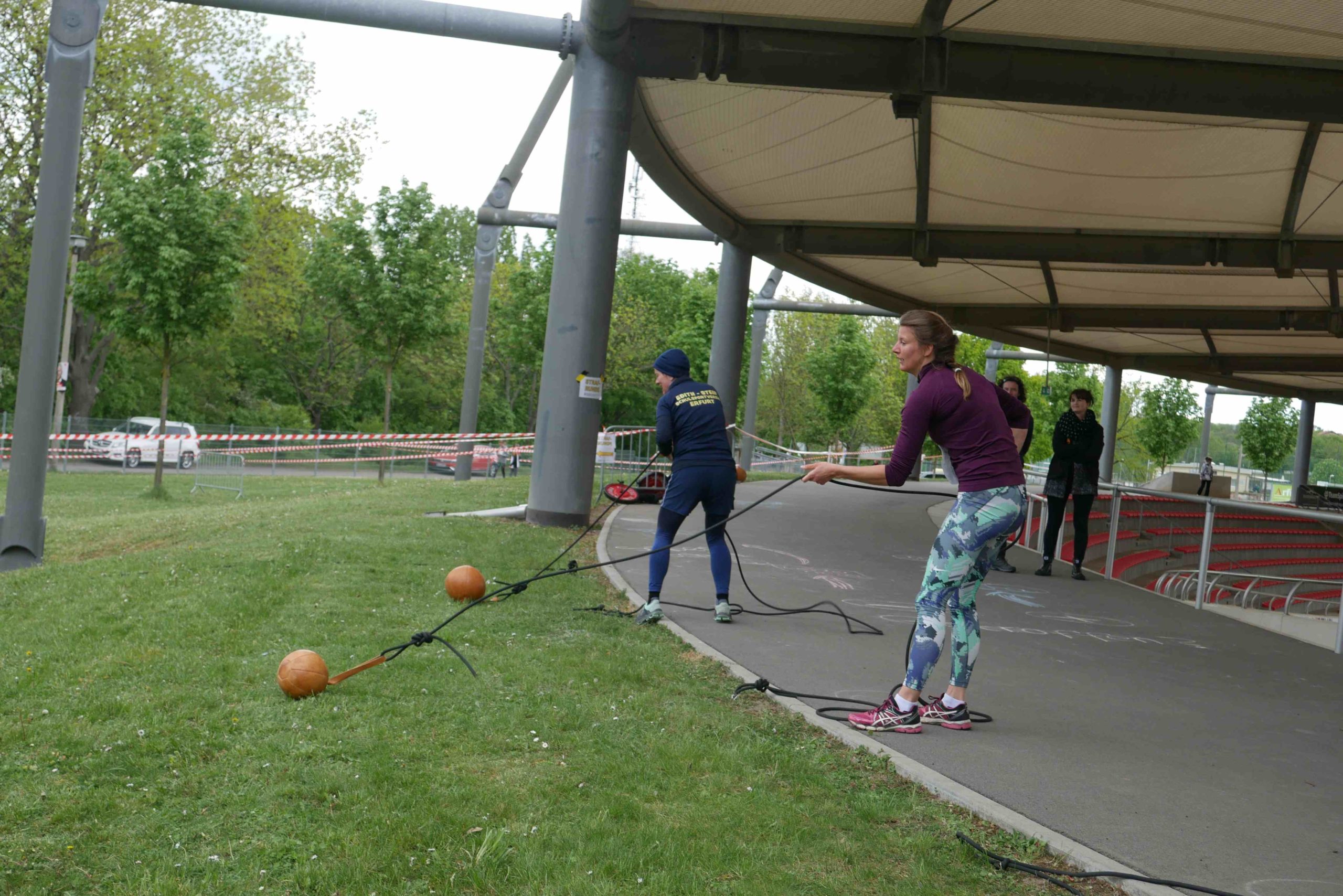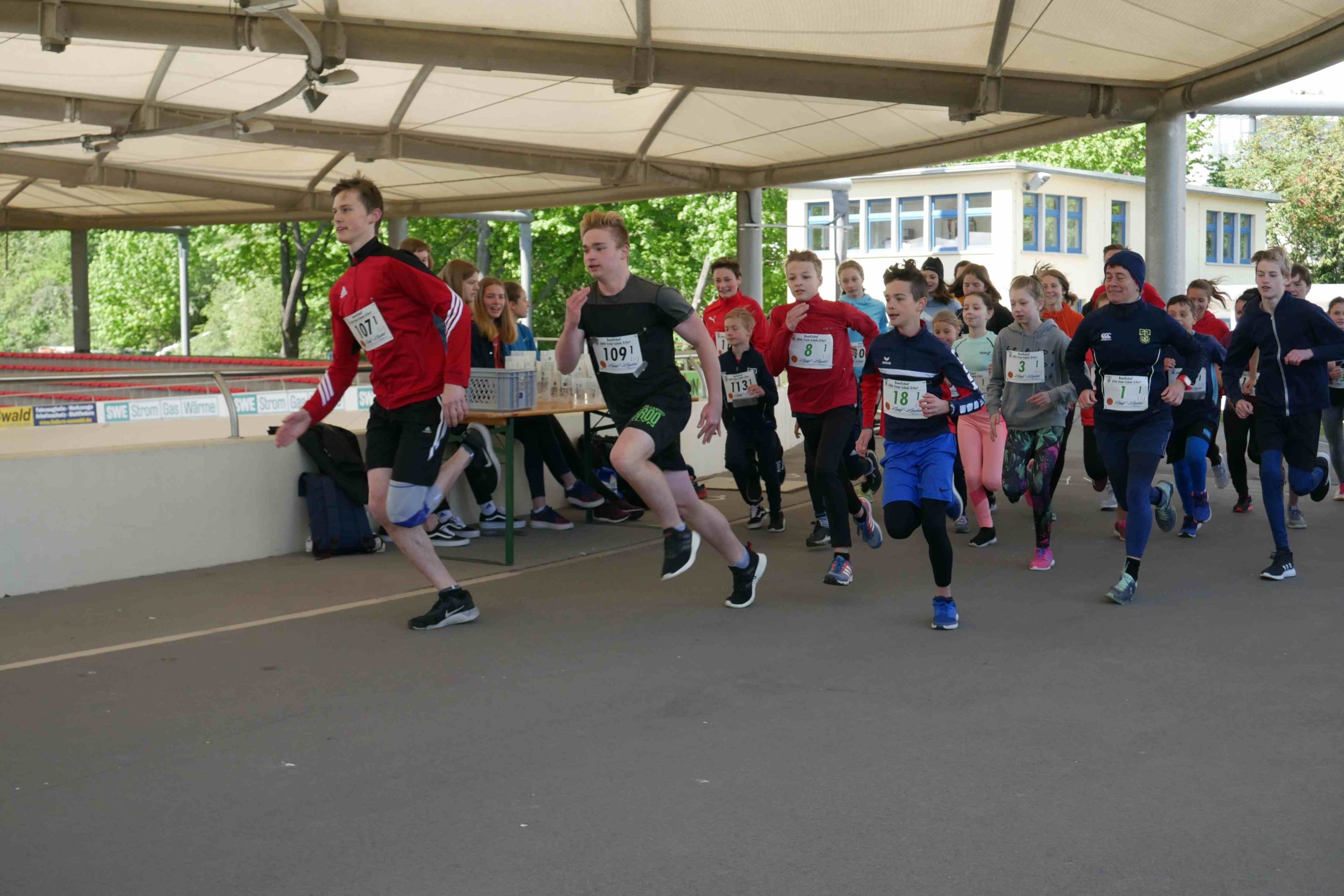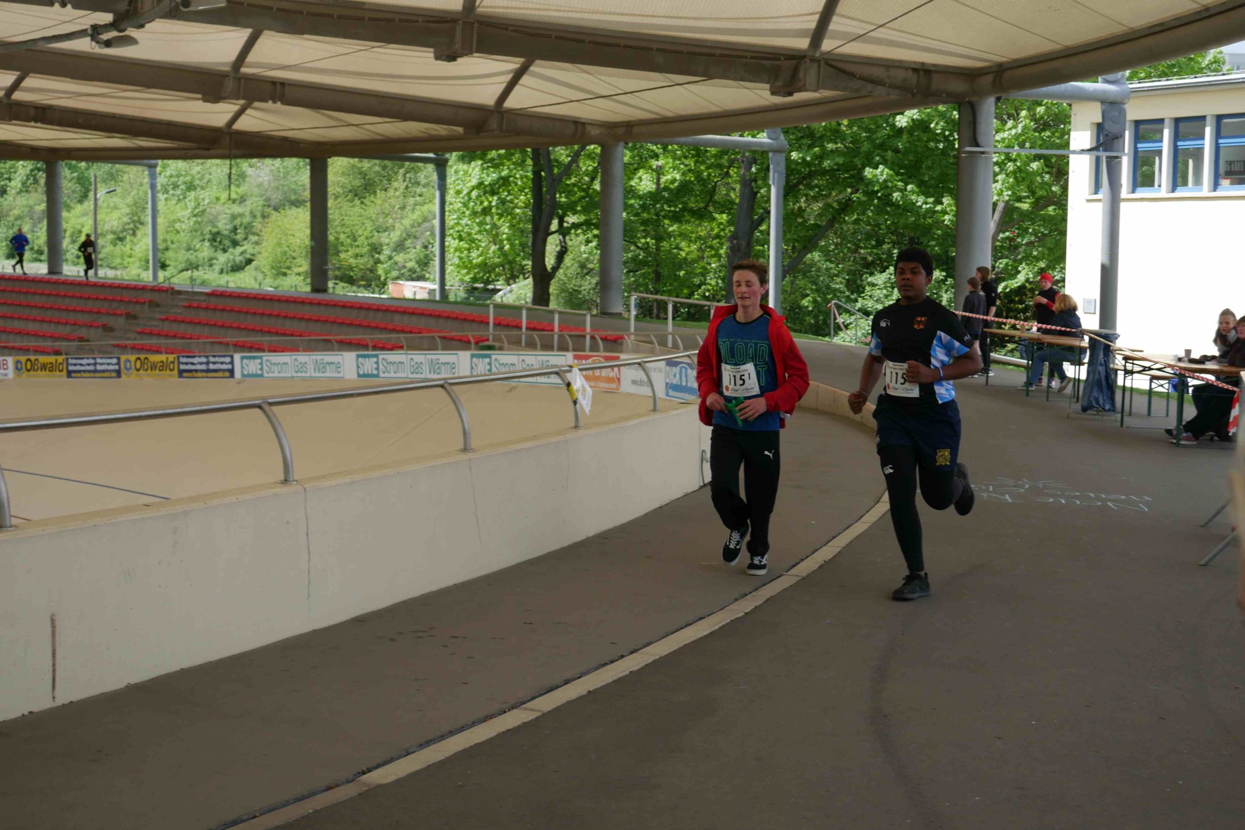 Der kurzen Begrüßung folgte eine Streckeneinweisung und gleich im Anschluss der Start in das zweistündige Rennen. Ob Kinderstaffel, Familienstaffel, Männer oder Frauen, die unterschiedlichsten Taktiken kamen zum Einsatz. Während einige Viererstaffeln Runde für Runde wechselten, hatten sich andere Zweierstaffeln den Lauf in mehrere Abschnitte aufgeteilt und liefen die 1,5 km lange Runde bis zu dreimal vor dem Wechsel. Einzelne Staffeln bewältigten gleich das ganze Rennen gemeinsam. Auf der Strecke kam es immer wieder zu kleinen Zweikämpfen, die dann im Stadionbereich der Radrennbahn in Sprintduellen kulminierten. Die Jüngsten, unter 10jährigen, lieferten sich bisweilen packende Spurts, aber auch die Großen ließen sich von den Anfeuerungsrufen des Publikums antreiben.