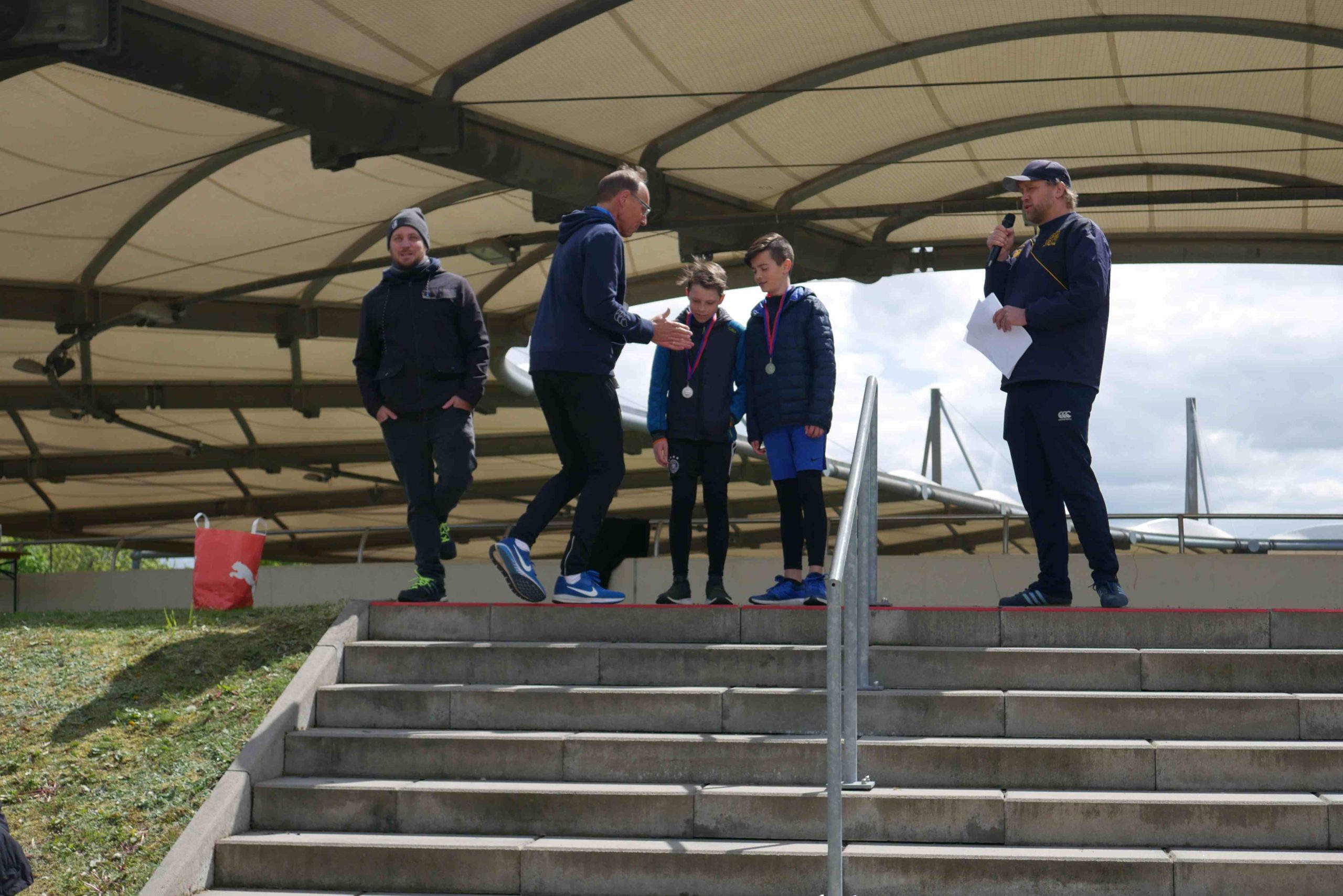 Viele Sieger wurden im Anschluss geehrt, doch der größte Gewinner des Tages war wohl der Schulsportverein der Edith-Stein-Schule. Die Sportlehrerfachschaft und Helfer hatten nicht nur eine hochgelobte Veranstaltung auf die Beine gestellt, sondern konnten gleichzeitig eine ordentliche Spendensumme für die Jubiläumsfahrt zu den United World Games nach Klagenfurt sowie die zahlreichen Projekte des Syabonga – Helfende Herzen für Südafrika e.V. einsammeln. Zum Abschluss deutete Vereinspräsident Peter Dubiel bereits an, dass es vielleicht nicht bei einer einmaligen Veranstaltung bleiben wird und es möglicherweise eine Fortsetzung des Laufes an dieser großartigen Wettkampfstätte geben wird.