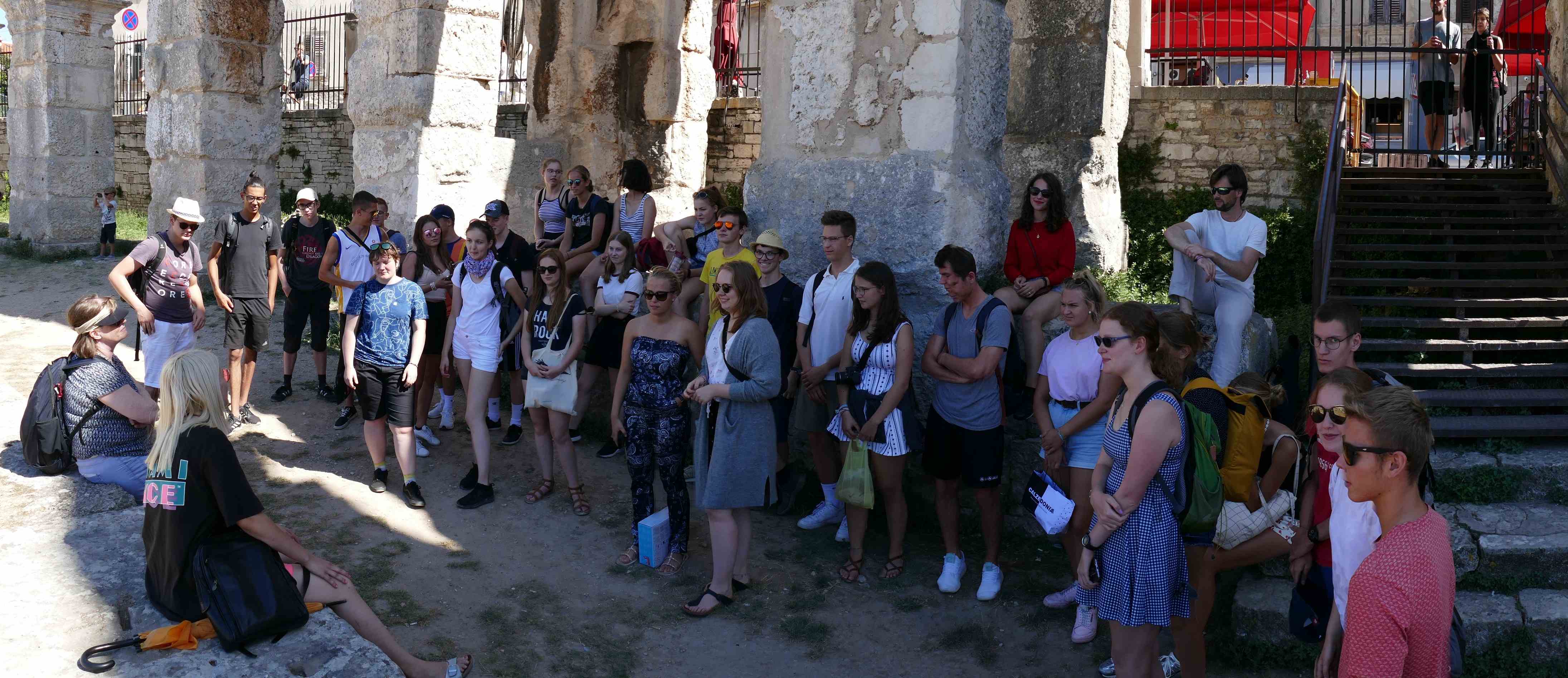 Für einen Teil der diesjährigen Abiturienten ging es dieses Jahr im Rahmen der Studienfahrt nach Kroatien. Nach ca. 13 Stunden Busfahrt und wenig Schlaf wurden die Zimmer im Hotel in Pula nahe des südlichsten Punktes von Istrien bezogen. Nach einem erholsamen ersten Tag am Strand direkt neben der Unterkunft erforschten die Schülerinnen und Schüler die größte Stadt Istriens: Pula. Um 177 v. Chr. war diese noch eine römische Kolonie, dann wurde sie Teil des Ostgotenreiches und später gelangte sie unter venezianische Herrschaft. Diese Kulturvielfalt hinterließ dementsprechend auch ihre Spuren: Das Amphitheater, welches unter Kaiser Augustus erbaut worden war, ist auch heute noch Ort für Konzerte und Events und ist das Wahrzeichen der Stadt. Somit endete ein geschichtsträchtiger Tag in Pula inklusive Einblicke in die historische Altstadt durch eine motivierte Führerin.