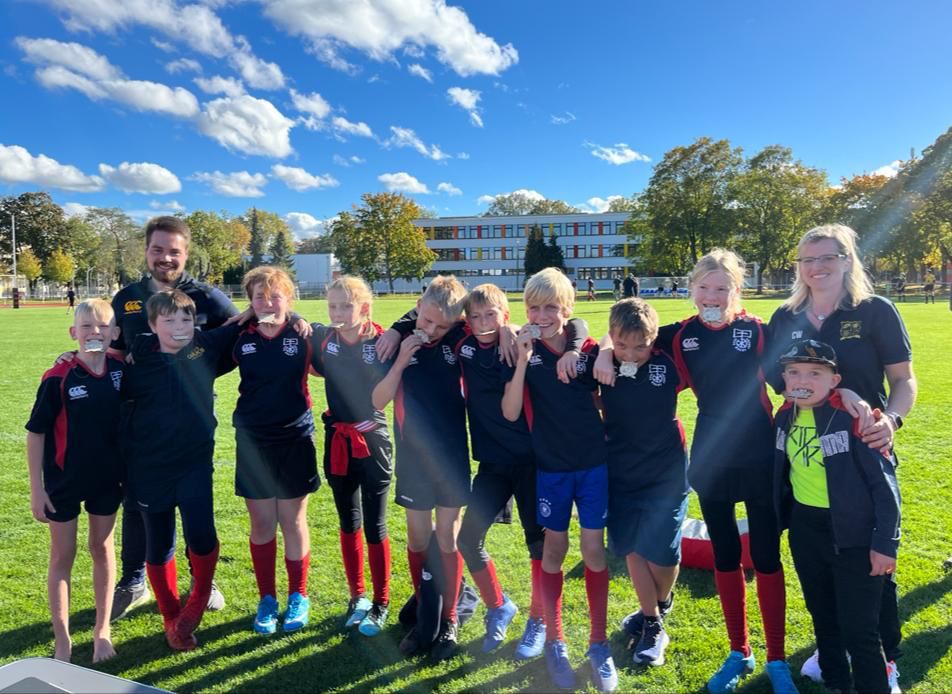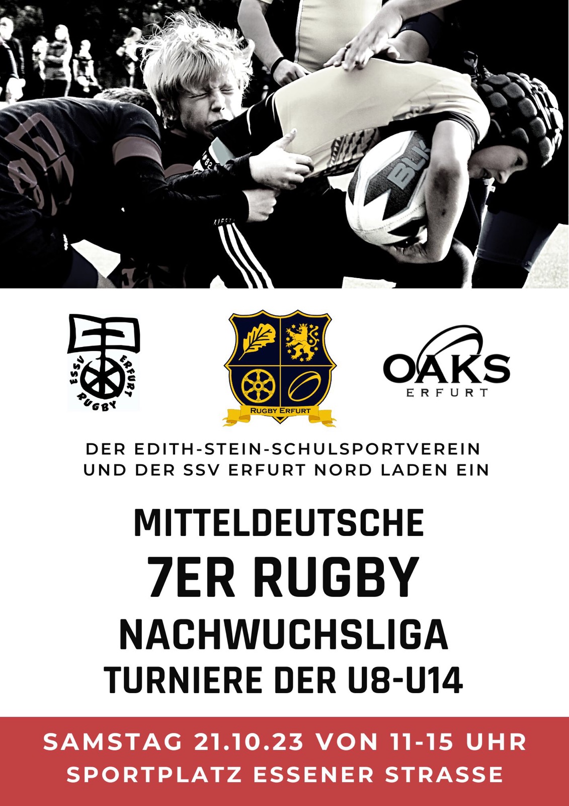 In der U12 trat der Edith-Stein-Schulsportverein als Einziges mit einer kompletten Mannschaft an. Gegen die teils körperlich überlegenen Spielgemeinschaften aus Dresden/Scorpions Leipzig/Halle sowie Gera/Jena/RC Leipzig lieferte unsere junge Mannschaft ihr bisher bestes Turnier ab. Viele Tackles saßen, der Ball lief besser durch die Hände und immer wieder gelang es, bis in die Endzone durchzubrechen und Versuche zu legen. Mit 20:30 und 30:35 gingen zwar beide Spiele knapp verloren, aber das Trainerteam und die Zuschauer waren begeistert von den Spielen. Kurios war zudem die Tatsache, dass der letzte Versuch zur Niederlage durch einen Erfurter gelegt wurde, der bei Gera/Jena/RC ausgeholfen hat. Seine Mannschaft feierte ihn trotzdem. Rugby eben.