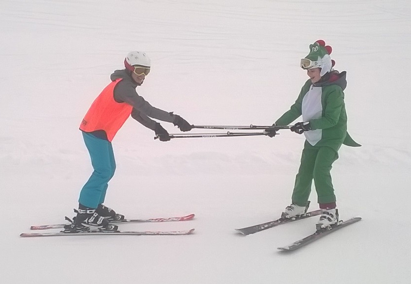 „In all den Jahren, die ich das Skilager jetzt betreue, habe ich das noch nicht erlebt.“ Selbst Routinier Herr Dubiel konnte nicht glauben, was sich in den fünf Tagen auf der Geislhochalm wettertechnisch abgespielt hat. Während über 60 Schüler der Edith-Stein-Schule auf knapp 2000m ihre Skiausbildung genossen, gab es insgesamt 95 cm Neuschnee und bei der Abreise war noch kein Ende anzusehen. Nun sollte man meinen, dass es die gesamte Zeit geschneit hat; weit gefehlt. An den ersten beiden Tagen hingen zwar die Wolken tief, es pfiff auf den Bergstationen und Sicht war teilweise kaum vorhanden, doch der Neuschnee war noch übersichtlich. Am dritten Tag wurden die ESSler sogar mit mit herrlichstem Sonnenschein belohnt. In der folgenden Nacht ging es dann los mit dem Schneesturm. Als am Morgen dann einige Lifte dennoch öffneten hielt es die wagemutigen Skischüler nicht mehr zurück und die verschiedenen Gruppen stürzten sich auf die Piste. Mit einem Kraftakt und Durchhaltevermögen kämpften sich alle den Hang hinunter. Ab Mittag musste man sich dann doch den Naturgewalten geschlagen geben, da alle Lifte aufgrund des Sturms mit Windböen von 125 km/h auf dem Pfeifferköpfl schliessen mussten. In kniehohem Neuschnee wurde dafür zum Ausgleich Rugby gespielt und sehr viele konnten im Laufe des Nachmittags engere Bekanntschaft mit dem weißen Pulver machen. Der letzte Skitag stand dann wieder im Zeichen der Ausbildung und die einzelnen Gruppen konnten ihr Können bei fantastischem Winterwetter weiter entwickeln. Die Profis kamen zunehmend in den Genuss des Carvens. Die mittleren Gruppen verfeinerten ihre Parallelschwünge und sammelten Erfahrungen im Tiefschnee. Den größten Fortschritt konnten natürlich die Totalanfänger verzeichnen, die zum Abschluss souverän eine Talabfahrt meisterten.
