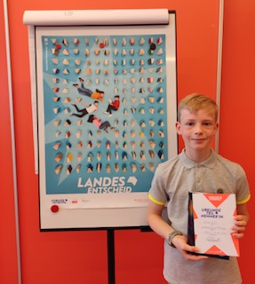 Kilian vertrat unsere Schule auch beim Landesentscheid würdig und konnte das Publikum begeistern mit seiner fesselnden Vorstellung des Buches „Der 1000-jährige Junge“ von Ross Welford.
