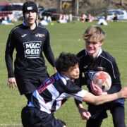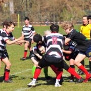 Der zweite Spieltag der Rückrunde in der Deutschen U16 Liga bedeutete für unsere Jungs erneut die Fahrt nach Berlin. Diesmal wartete der BSV 1892 und nach dem knappen Spiel gegen den Tabellenersten Berliner RC vor zwei Wochen rechneten sich die Spieler der Mitteldeutschen Verbandsauswahl durchaus Chancen beim zweiten Vertreter aus der Hauptstadt aus. Leider konnten die Berliner kein volles Team stellen und so einigten sich die Verantwortlichen auf ein 13 gegen 13, was etwas weniger Spielzeit für die Wechsler bedeutete. Nichtsdestotrotz standen alle sieben ESSVler in der Startformation und man wollte vor allem über diese eingespielte Hintermannschaft zum Zuge kommen. Das gelang in den Anfangsminuten jedoch lediglich den schnellen Spielern des Berliner Sportvereins, die nach zwei Durchbrüchen zu den ersten Versuchen kamen und mit 14:0 Uhr in Führung gingen. Auch wenn sich die Konzentration steigerte, die Tackles nun besser saßen und phasenweise auch gutes Angriffsrugby gespielt wurde, kam es immer wieder zu Ballverlusten, welche die Berliner mit ihrem schnellen Konterspiel gnadenlos für sich zu nutzen wussten. Erst nach drei weiteren Gegenversuchen gelang direkt nach einem eigenen Ankick der Ballgewinn und ein unmittelbarer Sololauf Wendelins führte zum ersten Versuch für die Thüringer und Sachsen. Beim Halbzeitstand von 31:5 schien jedoch bereits der Zug zu ihrem ersten Saisonsieg bereits abgefahren zu sein.