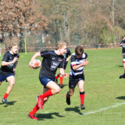Die Jungs steckten dennoch nicht auf und starteten mit aggressiven Ballvorträgen, sicheren Stürmerphasen und kreativen Angriffen der Hinterreihe fulminant in die 2. Hälfte. Zunächst konnte ein Pass der Berliner herausgefischt werden und Titus tauchte nach einem Sprint über die Hälfte des Feldes im Malfeld ein. Noch sehenswerter war der folgende Versuch, bei welchem ein Kick des Verbinders Lino ins Berliner Malfeld glücklich in die Arme des hinterherjagenden Wendelin sprang und der Ball nur noch abgelegt werden musste. Die Berliner ließen aber nur kurz Hoffnung aufkeimen und antworteten ihrerseits mit einem weiteren Versuch. Eine Dresdner – Leipziger Kombi von Pit und dem eingewechselten Ian führte dann jedoch zum nächsten Anschlussversuch für die Spielgemeinschaft. Doch das letzte Wort hatten erneut die Berliner. Der 41:22 Endstand bedeutete zumindest, dass die zweite Halbzeit gewonnen wurde und die Spieler mit einem positiven Gefühl das Feld verließen.