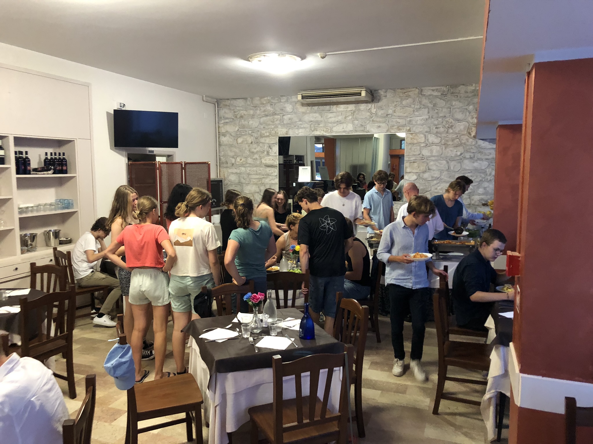 Giorno 1 – 27 agosto 2023 Benvenuto in Italia! Nach 15 Stunden Busfahrt und mehr oder weniger gutem Schlaf haben wir endlich unser Ziel Rimini erreicht. Begrüßt wurden wir von blauem Himmel, strahlendem Sonnenschein und mehr als 35 Grad im Schatten. Uns hielt es nicht lange in den Zimmern, wir wollten an den Strand. Die Adria war wunderbar warm und die Liegen mit Sonnenschirmen, soweit das Auge reicht, sorgten für das absolute Urlaubsfeeling. Das Baden machte alle hungrig und zurück im Hotel gab es für uns Pasta, Salat und selbstverständlich Dolci – typisch italienisch. Gut gesättigt, ließen wir unseren ersten gemeinsamen Abend mit intensiven Gesprächen, Kartenspielen wie Wizard und Uno sowie dem Besuch der Dachterrasse  ausklingen.