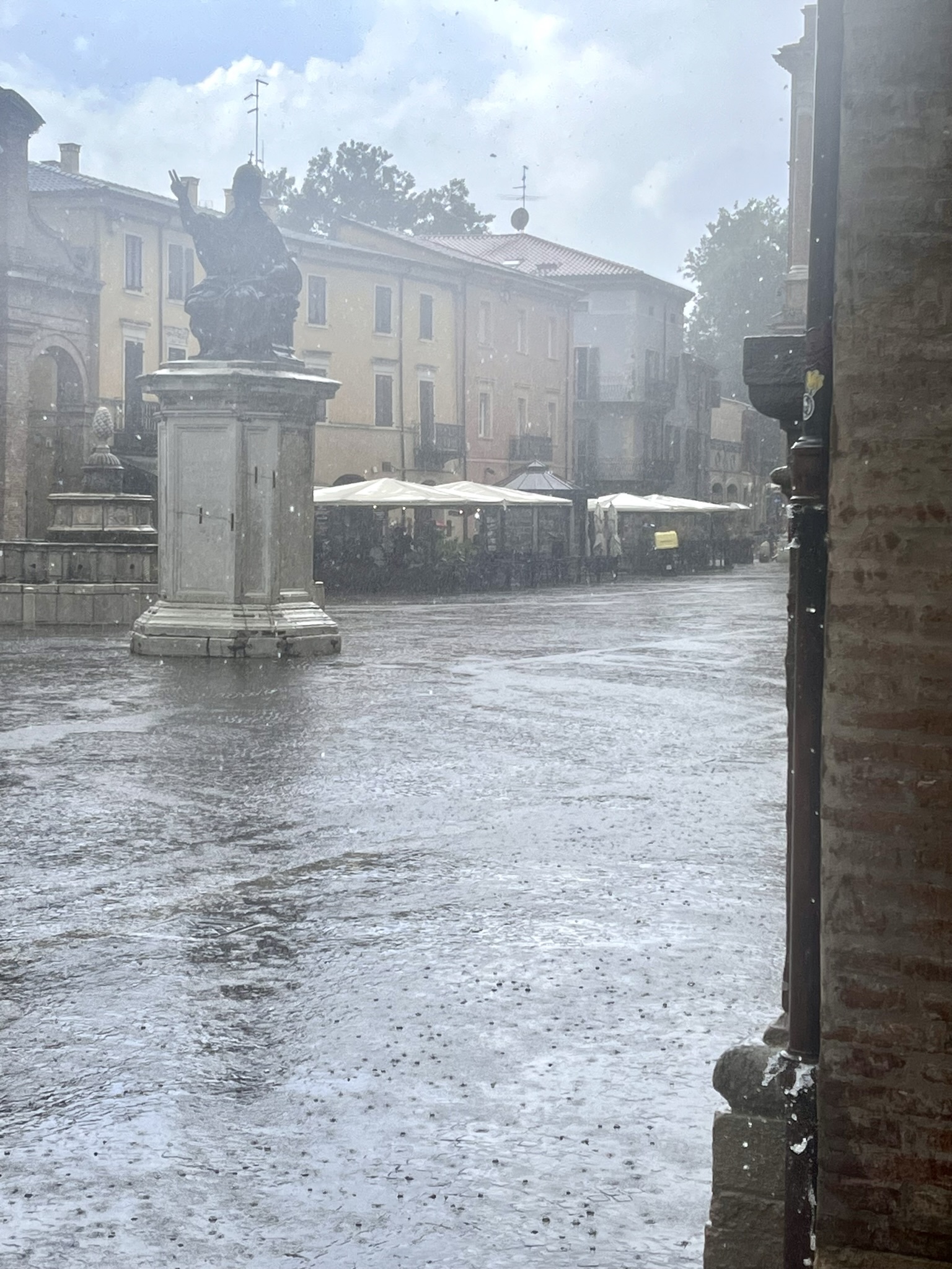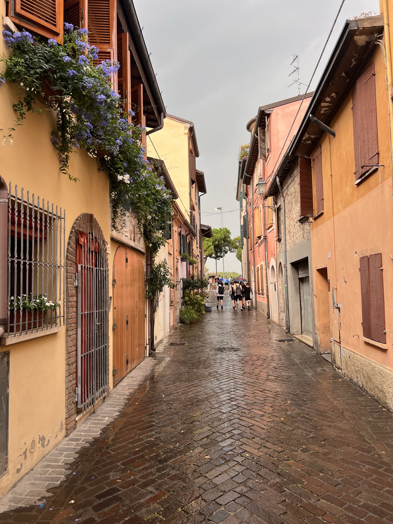 Giorno 3 – 29 agosto 2023 „Bologna meine Stadt“ – so heißt es in dem Song „Bologna“ von Wanda. Auch wir kamen in den Genuss, diese wunderschöne Stadt zu entdecken. Bologna hat eine der besterhaltenen Altstädte Europas und besitzt unzählige Sehenswürdigkeiten. Unser erster Stopp war die älteste Universität Europas – die Università di Bologna (1088). In ihrem Anatomischen Theater saßen wir in der ersten Reihe und konnten uns vorstellen, wie einstmals anatomische Vorlesungen gehalten und auf dem Marmortisch in der Mitte nachts, aber nur in den Wintermonaten, Sezierungen vorgenommen wurden. Wir besichtigten die Biblioteca Comunale dell’Archiginnasio, die eine große Sammlung an seltenen und sehr wertvollen Werken beherbergt. Auf der Piazza Galvani erkannten wir die Statue des Wissenschaftlers Luigi Galvani und erinnerten uns an dessen „Froschschenkel-Experiment“. Die große Piazza Maggiore war begrenzt von wunderschönen Bauwerken. Auffallend war die unvollendete Fassade der gigantischen Basilika San Petronio, die wir in kleinen Gruppen besichtigten und über die bunten Glasfenster und den durch die Kirche verlaufenden Meridian staunten. Unverständlich war das Verhalten des Kirchenpersonals am Einlass: „5 rein wenn 5 raus““   Nach einer Mittagspause ging es noch ins Heiligtum Santo Stefano (392 n.Chr.), einem Vierkirchenkomplex mit Grabeskirchennachbau und  Pilatushof sowie deutlichem römischem Tempelrecycling. Vierzig Kilometer  Rundbogenarkaden (portici)zieren die Stadt und sorgten für trockene Rückkehr zum Bus. Auf der Rückfahrt, die uns zwar nicht nach Rom, sondern ins Hotel führte, sahen wir den Film „To Rome with Love“ von und mit Woody Allen. Ein Strandspaziergang im Dunkeln rundete den eindrucksvollen Tag ab.