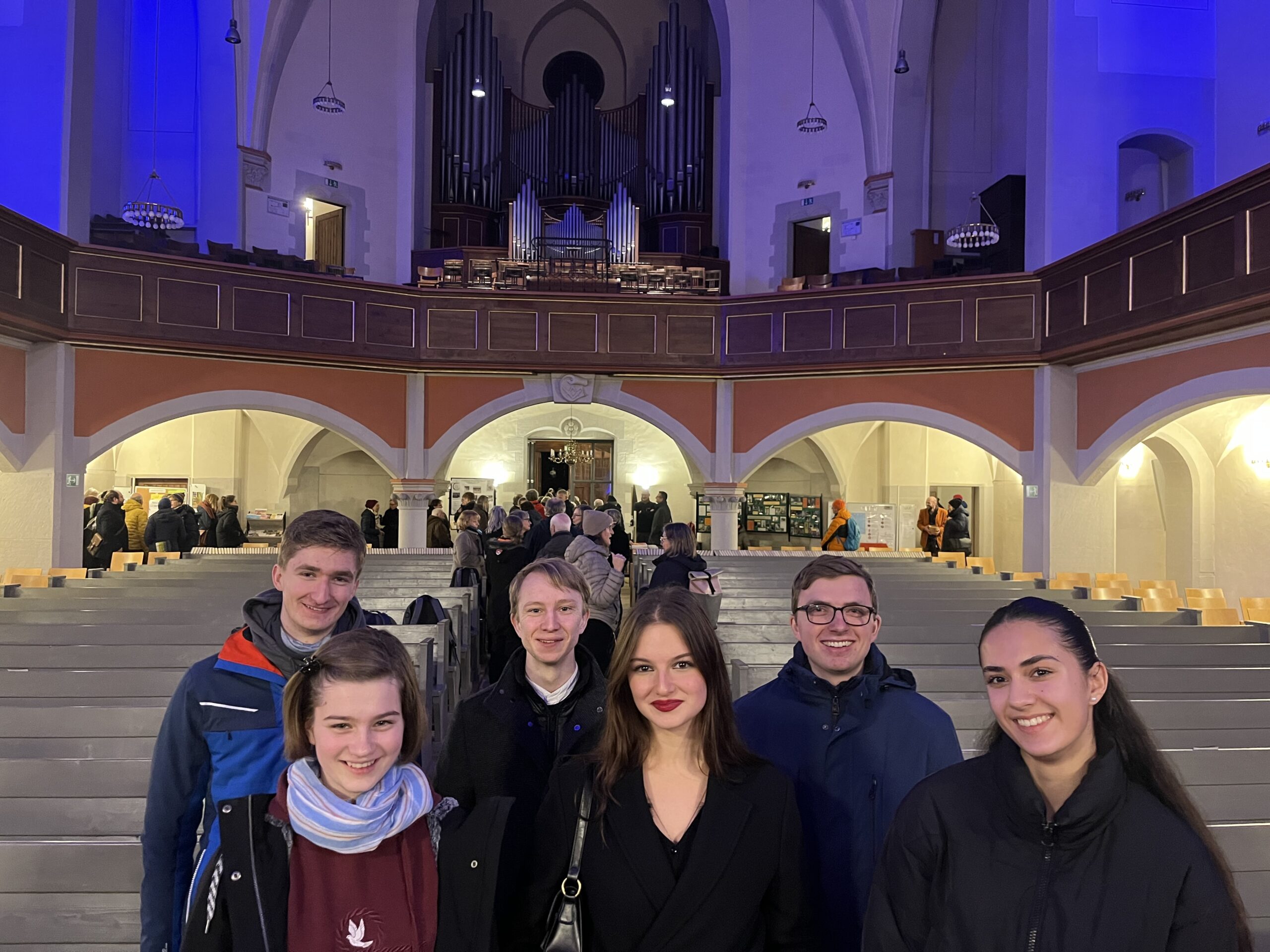 „Jauchzet, frohlocket, auf, preiset die Tage“, heben Chor und Orchester feierlich an, und die Thomaskirche wird sofort von vorweihnachtlich-festlichen Klängen erfüllt. Sängerinnen und Sänger des VoicESS-Kammerchores besuchten gemeinsam die Aufführung von Bachs Weihnachtsoratorium, das immer traditionell am dritten Adventswochenende in Erfurt aufgeführt wird. Beeindruckt und ergriffen lauschten sie dem Andreas-Kammerorchester und der Augustinerkantorei, entdeckten manch bekanntes Gesicht von Lehrern als Mitwirkende oder als Besucher, bewunderten das große Chorpodest für über 130 Sängerinnen und Sänger, freuten sich über die warme und geheizte Kirche und staunten, wie viele Gäste in der Thomaskirche Platz finden.