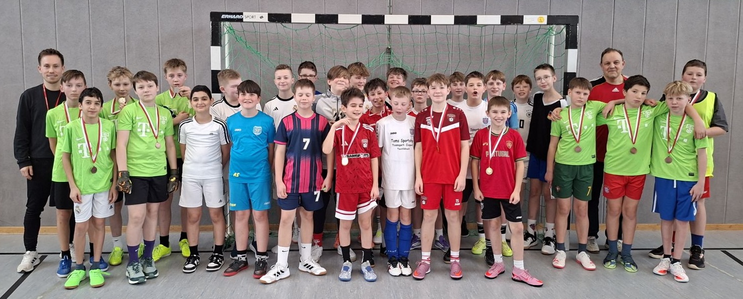 Am 5.2.26 waren Mannschaften der 5. und 6. Klasse im Rahmen der Projekttage am Ratsgymnasium zu einem Fußballturnier eingeladen. Unsere beiden Teams schlugen sich sehr gut und erreichten in ihren Staffeln über die Plätze 1 und 2 das Halbfinale. Team 2 gewann beide Vorrundenspiele (5:1 und 1:0), Team 1 gewann 1:0 und verlor 0:2.