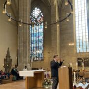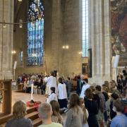 Zum Abschluss der ersten Woche gab es insbesondere für die neuen 5. Klassen noch einen schulgemeinschaftlichen Höhepunkt. Mit über 800 Schüler*innen und Lehrer*innen konnten wir nach über zwei Jahren wieder im pickepackevollen Dom unseren Schuljahresanfangsgottesdienst feiern. Nachdem das Platzkontingent durch weitere Bänke ergänzt und alle Klassen professionell eingewiesen waren, wurden Klein und Groß Willkommen geheißen und mit aufmunternden und nachdenklichen Worten für das Schuljahr eingestimmt. Der Jugendchor “VOICESS” und der Lehrerchor sorgten für einen musikalischen Rahmen, der vom Fellnerschen Orgelauftakt und den gemeinsam gesungenen Liedern wunderbar ergänzt wurde. Eine “zu herzengehende Atmosphäre, Musik bis in die Fußspitzen und tiefe beglückende Stille”, so fasste Religionslehrer Frank Fritsch seine ersten Eindrücke im Anschluss zusammen und war damit sicher nicht allein. Ein toller Auftakt in ein Schuljahr, bei welchem der Wunsch nach weiterer Normalität im Ablauf sicher bei vielen an erster Stelle steht. Drücken wir die Daumen und hoffen auf Beistand von oben.