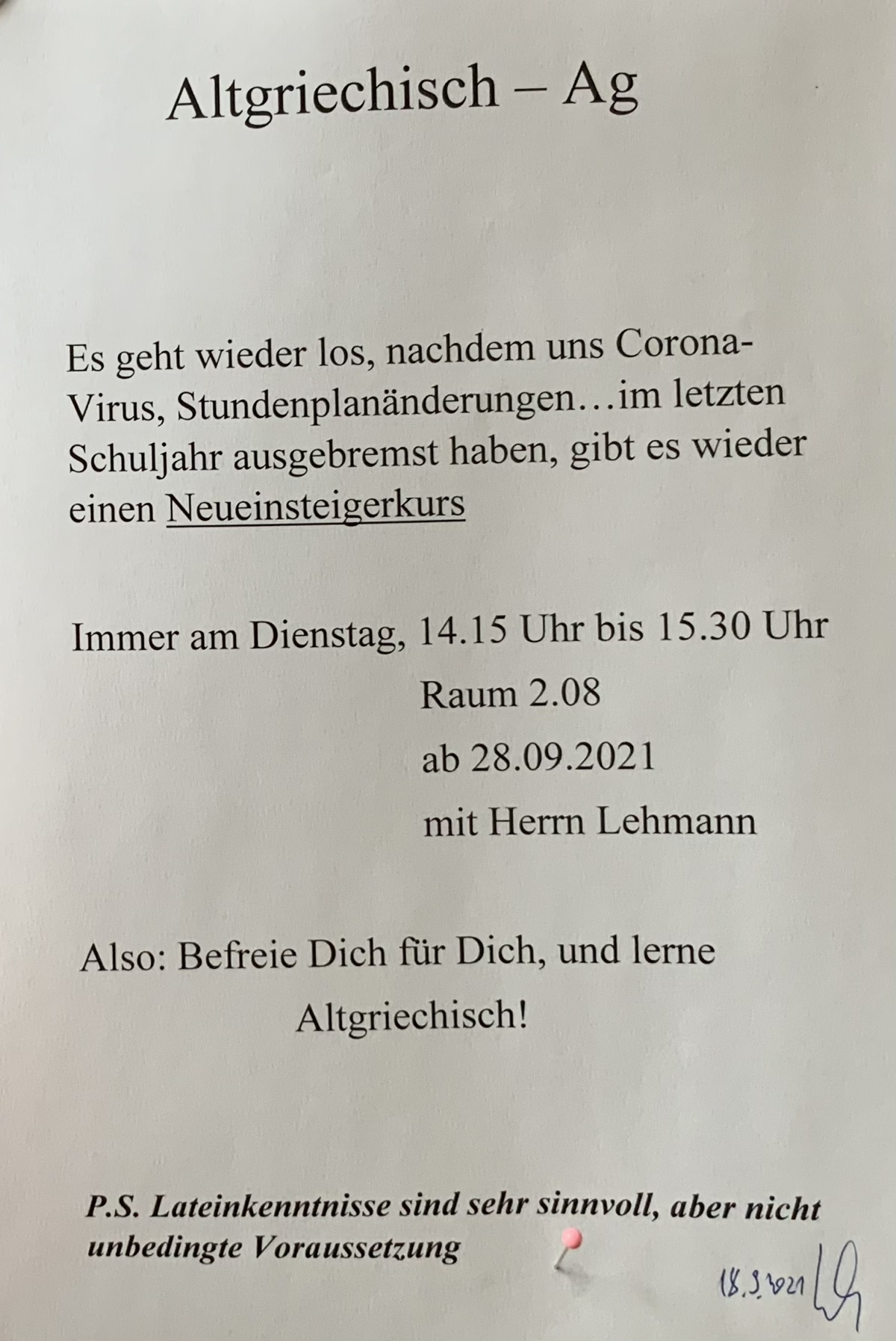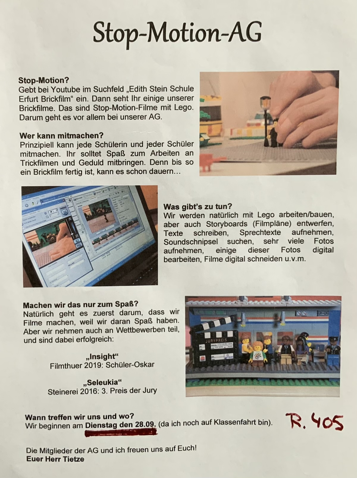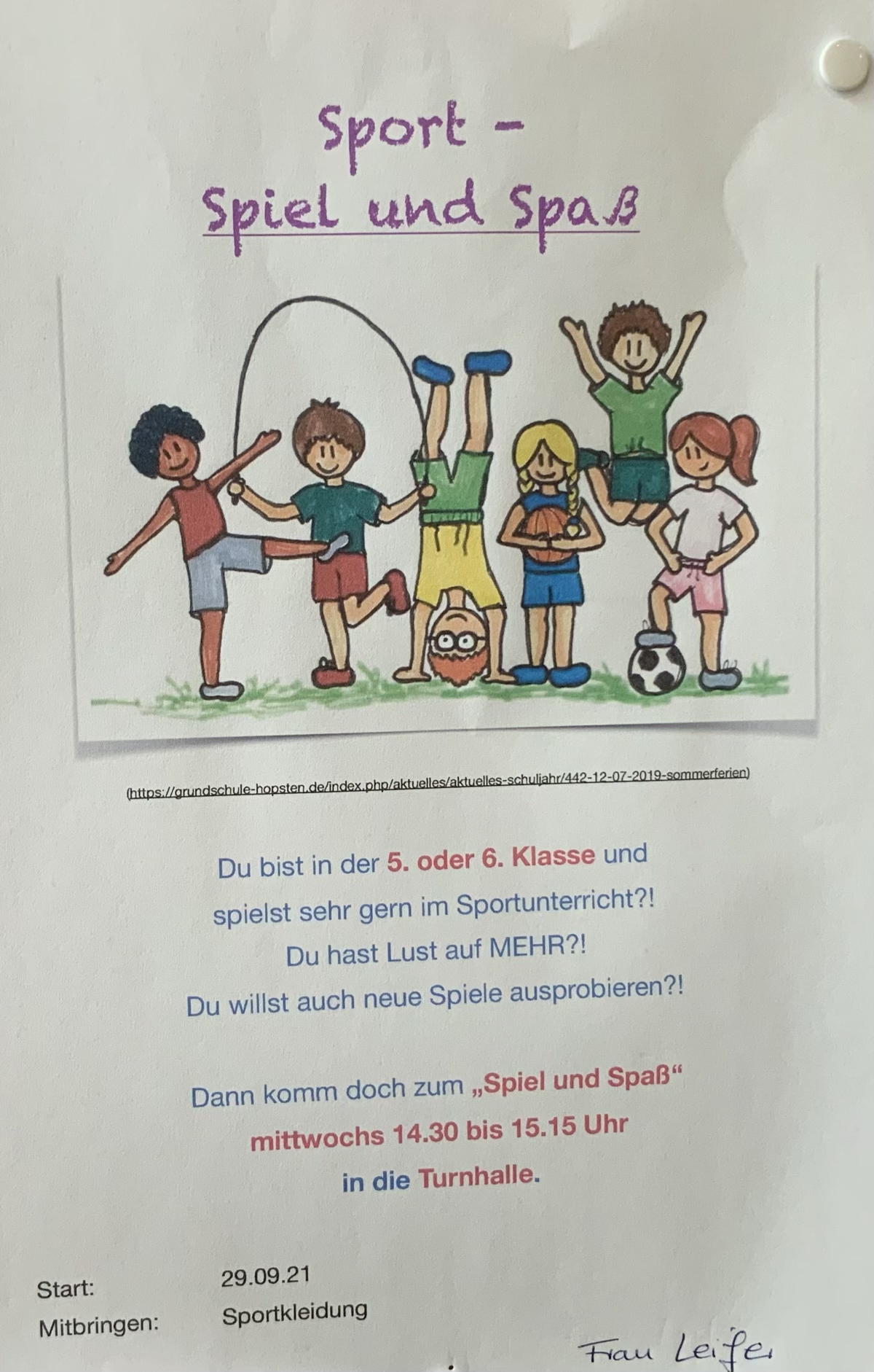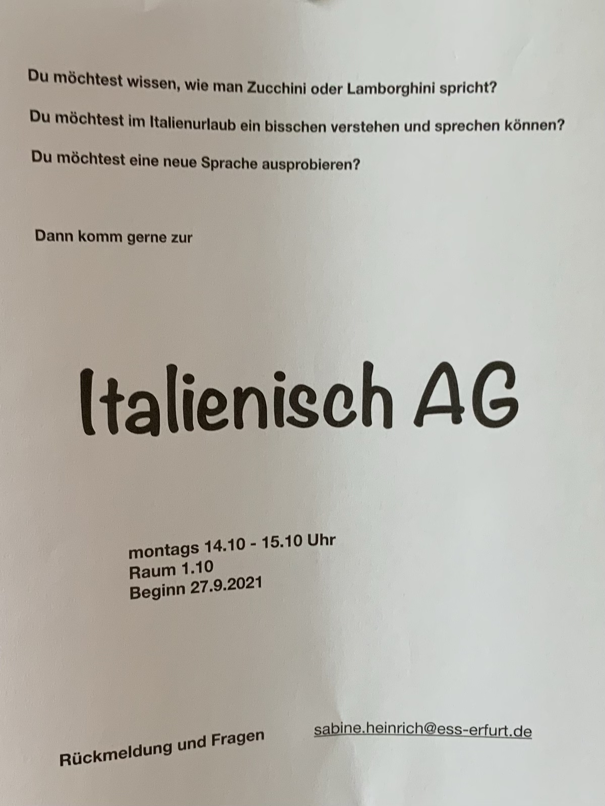 In der letzten Woche starteten viele Arbeitsgemeinschaften und Sportangebote an der Edith-Stein-Schule. Auch in der nächsten Woche fangen noch neue interessante Beschäftigungsmöglichkeiten an. So hat der Schulsportverein seine Trainingszeitenplan aktualisiert und es kann überall noch eingestiegen werden. Hier findet ihr ein Übersicht mit allen Zeiten und Möglichkeiten.